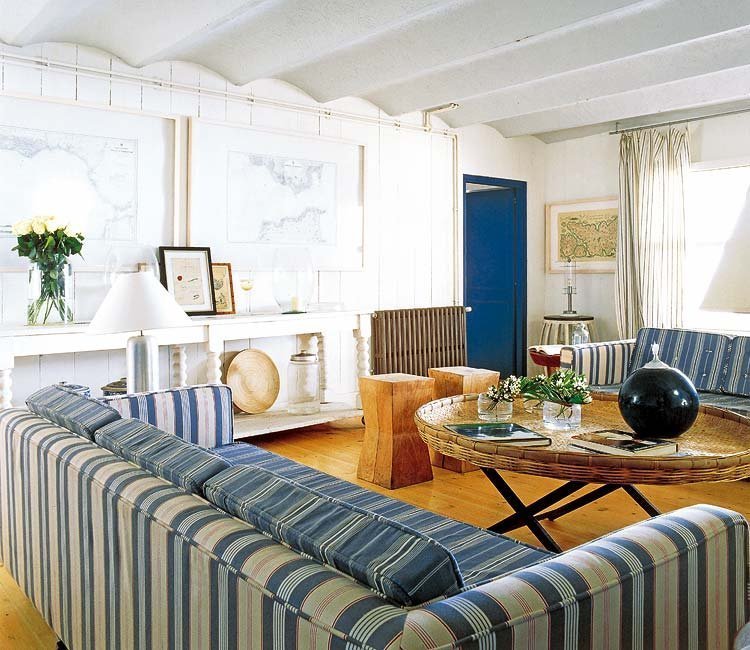 白:这是比较典型的地中海颜色搭配。西班牙、摩洛哥海岸延伸到地中海的东岸希腊。希腊的白色村庄与沙滩和碧海、蓝天连成一片,甚至门框、窗户、椅面都是蓝与白的配色,加上混着贝壳、细沙的墙面、小鹅卵石地、拼贴马赛克、金银铁的金属器皿,将蓝与白不同程度的对比与组合发挥到极致